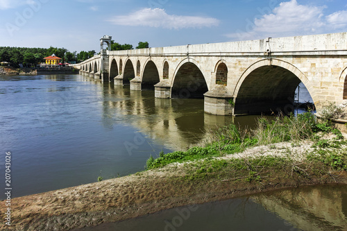 Naklejka premium Bridge from period of Ottoman Empire over Meric River in city of Edirne, East Thrace, Turkey