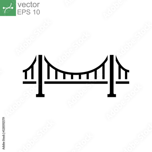 © Suncheli, Obraz premium Bridge icon, solid style, road, architecture. Ground transportation. Constructions of stone metal girders architectural symbol for web graphic. Vector illustration. Design on white background EPS 10