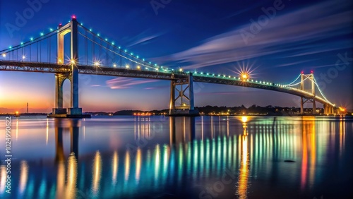 © Sayfar, Obraz premium Bridge in Background at night in Newport Rhode Island Forced Perspective