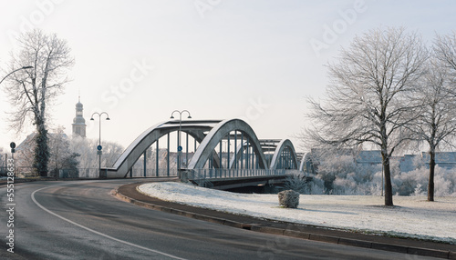 Obraz premium Bridge in the snow, Ilvesheim, Germany
