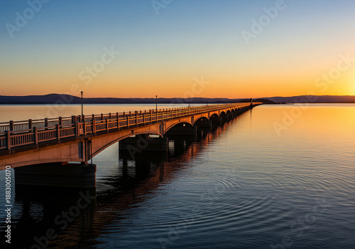 © Novi, Fototapeta premium bridge on the lake at sunset