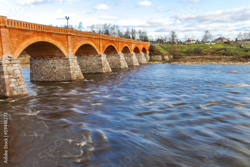 Naklejka premium Bridge on Venta river, Kuldiga, Latvia.