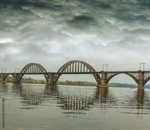 © Yuriy Kulik, Naklejka premium bridge over a river at the dark wet weather