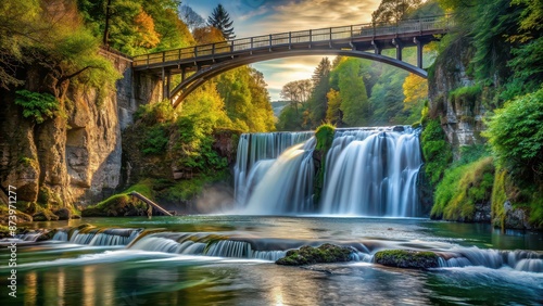 Obraz premium Bridge over a river with a stunning waterfall in the background, bridge,...