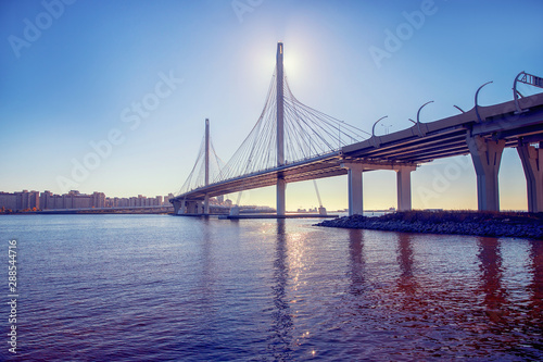 © Parilov, Obraz premium Bridge over Neva of Western High Speed Diameter in St. Petersburg Russia