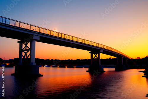 Naklejka premium Bridge Over River Against Sky During Sunset