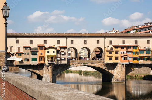 Obraz premium Bridge over river Arno of ancient Tuscany city, Italy. Historical Florence is...