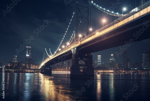 Fototapeta premium bridge over river in urban area with view of city lights. generative ai