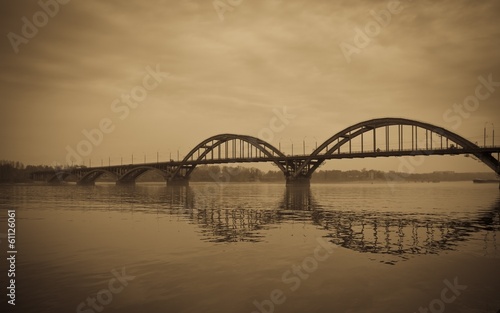 © azamotkin, Fototapeta premium Bridge over river with vignette effect. Retro style image