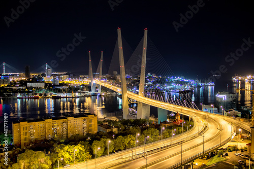 Fototapeta premium Bridge over the golden horn bay Vladivostok