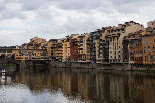 © Studio Eli, Naklejka premium Bridge over the river Arno. Bank of the river Arno in Florence, Italy. Reflection.