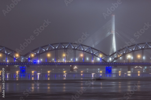 © Ingus Evertovskis, Naklejka premium bridge over the river at evening