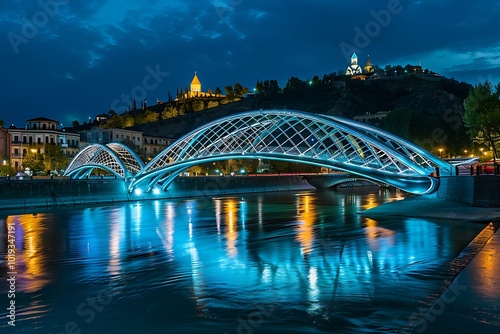 © Md Mojammel, Obraz premium Bridge over the river at night in Tbilisi, Georgia.