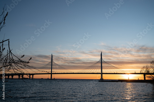 Obraz premium bridge over the river at sunset.