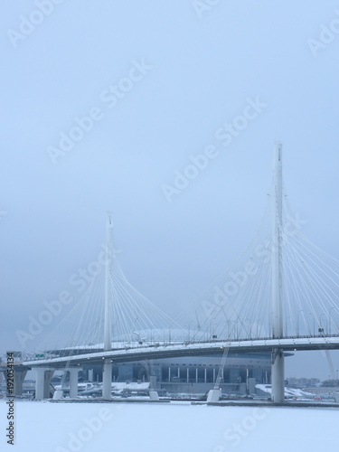 © Andrey, Fototapeta premium bridge over the river in the winter evening