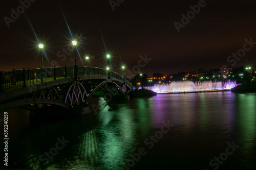 Fototapeta premium bridge over the river in Tsaritsyno park at night