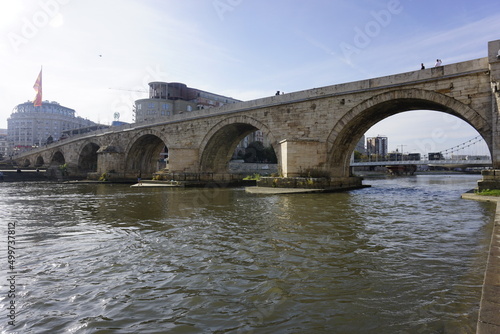 © Biljana Nik, Fototapeta premium bridge over the river vardar in skopje
