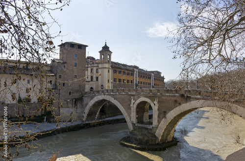 © Elena, Obraz premium bridge over the Tiber river to Tiber island, Rome