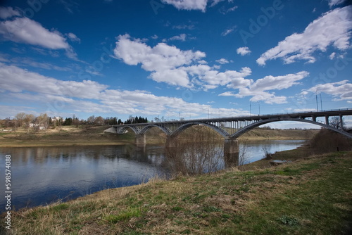 © Олег Раков, Naklejka premium Bridge over the Volga River in the town of Staritsa.