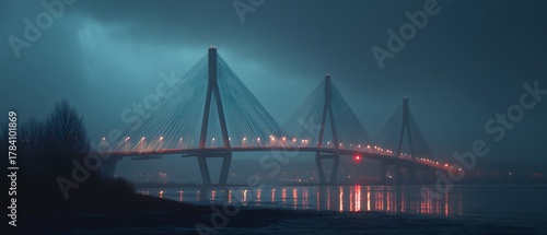 © Vilius, Naklejka premium bridge over water at night with lights on