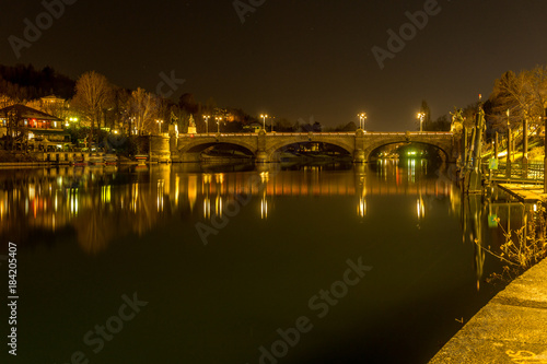 Fototapeta premium Bridge, panorama of turin at sunset