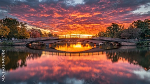 © Aliando, Fototapeta premium Bridge Reflecting the Colorful Sunset