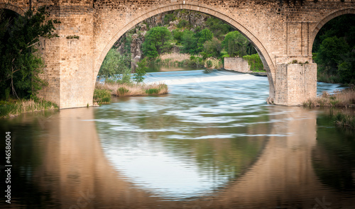 © Konstantin Yolshin, Obraz premium Bridge reflects in river of Toledo, Spain, Europe.
