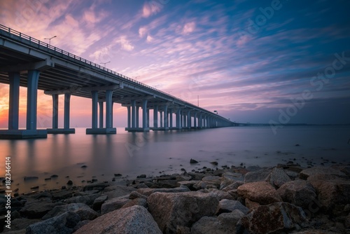 © Xiaoneng, Fototapeta premium bridge Water and sunset.