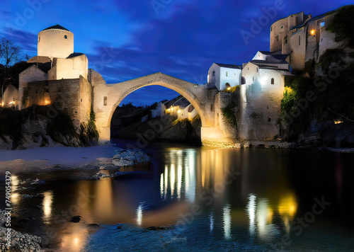 Fototapeta premium bridge with reflect light in water,