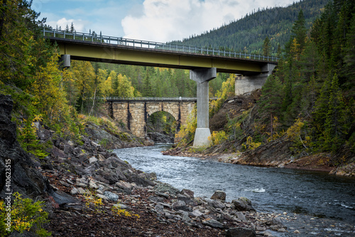 Fototapeta premium Bridges on mountains river in Norway.