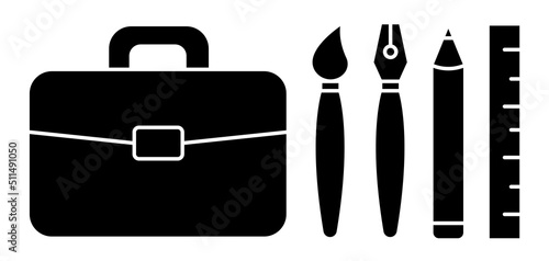 © AdobeMaster1983, Fototapeta premium Briefcase and Art Tools Flat Icons. Stock Vector