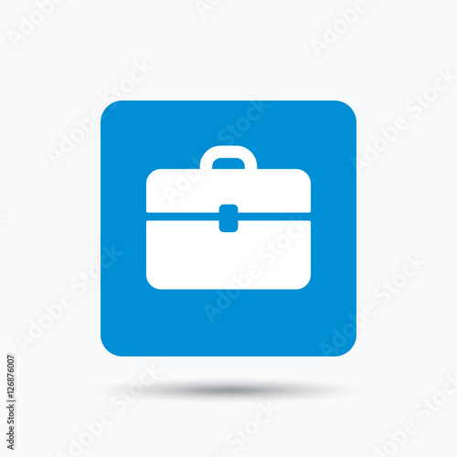 Obraz premium Briefcase icon. Diplomat handbag symbol. Business case sign. Blue square button with flat web icon. Vector