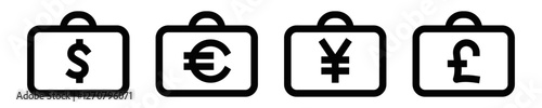 © OpaDesign, Obraz premium Briefcase vector icon with different currency symbols inside. Editable stroke.