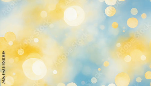 © Sergey, Obraz premium Bright abstract watercolor background with yellow and white circles on a blue backdrop and copy space