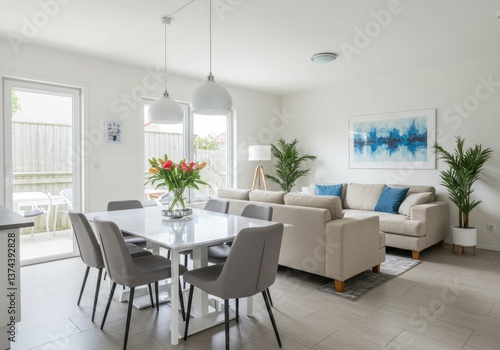 Fototapeta premium Bright airy open concept dining and living area