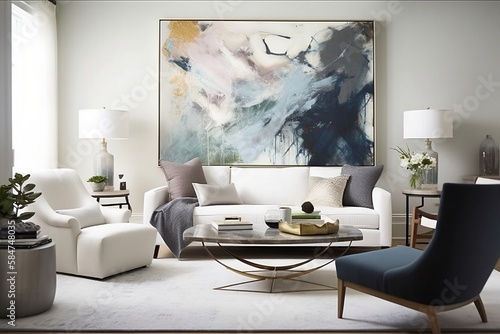 © Kai, Obraz premium Bright and Airy: An Abstract Generative Art Piece of a Minimalist Living Space, 3D model.