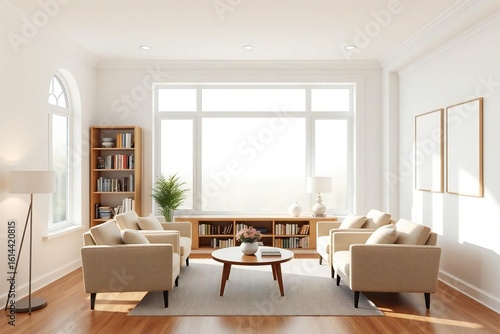 Fototapeta premium Bright and airy living room with modern furniture and large windows