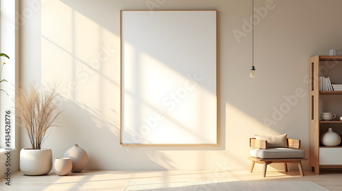 Fototapeta premium Bright and airy minimalist interior with a blank canvas, perfect for...