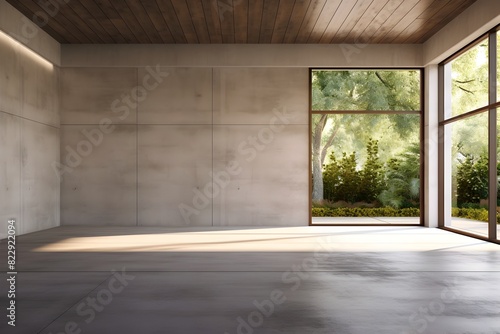 Fototapeta premium Bright and airy modern loft with open access to serene garden landscape