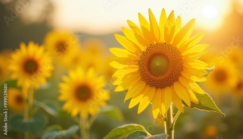 Fototapeta premium Bright and Beautiful Sunflower Field Blossom