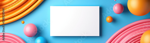 © JK_kyoto, Obraz premium Bright and colorful flat lay design featuring blank s surrounded by vibrant shapes. Perfect for creative projects and presentations