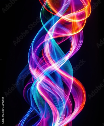 Naklejka premium Bright and colorful glowing strings of lights twist and turn with a neon effect showcasing an abstract display of energy and inspiration. This artistic representation invites creativity and joy