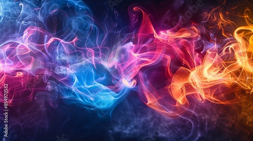 © tanapat, Obraz premium Bright and colorful neon smoke creating an abstract scene