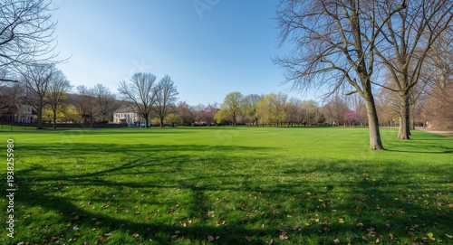 Obraz premium Bright and colorful springtime view of a wide grassy park