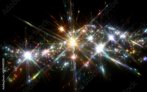 © fanjianhua, Obraz premium Bright and colorful star-like lights bursting in the dark