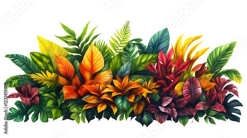 © BestFootageFirst, Fototapeta premium Bright and detailed tropical plant composition on a crisp white canvas