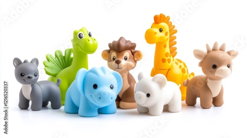 © Stocker, Naklejka premium Bright and fun animal toy figures isolated on white background playful learning. Generative AI