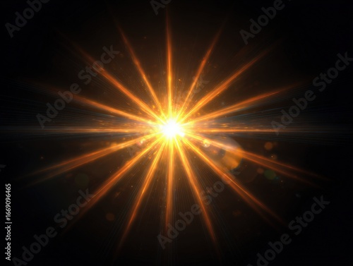 © Wittaya, Naklejka premium Bright and Glowing Starburst with Radiating Light Rays Against a Black Background