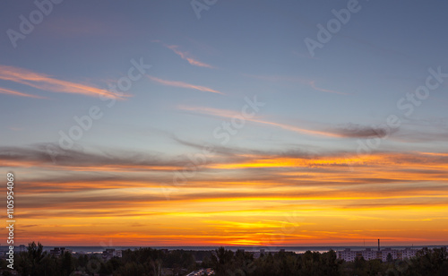 Fototapeta premium Bright and mysterious dawn, beautiful clouds on the horizon