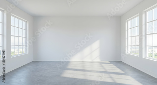 Fototapeta premium Bright and Spacious Empty Room with Large Windows and Natural Light